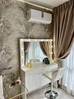 -Два балкона (застекленный и открытый по 3 кв.м каждый)-Дизайнерский ремонт-Наличие гардеробной 3 кв.м-Наличие кондиционера-Квартира полностью укомплектована мебелью и техникой Еlесtrоluх, LG, Sumsung. Плитка во всей квартире Кеrаmа Маrаzzi, обои Маrburg, входная дверь Гардиан. В кухне каменная столешница с интегрированной раковиной. Мебель на заказ антивандальная, покрытие Тедди.