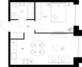 Продаётся 1-комн. квартира площадью 38,2 кв.м на 8 этаже 8 этажного дома (Корпус 1, Секция 1) проекта ПИК Ботаническая 3. Светлый просторный подъезд на уровне земли, функциональная планировка, большие окна, без отделки.