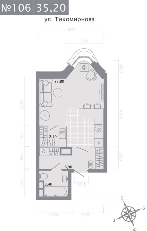Продаётся студия в строящемся доме (Дом 3), срок сдачи: IV-кв. 2026, общей площадью 35.2 кв.м., на 4 этаже. Новый жилой комплекс "Нити" от застройщика "КамаСтройИнвест" расположен по адресу: Россия, Республика Татарстан, Казань, Вахитовский район, улица Калинина