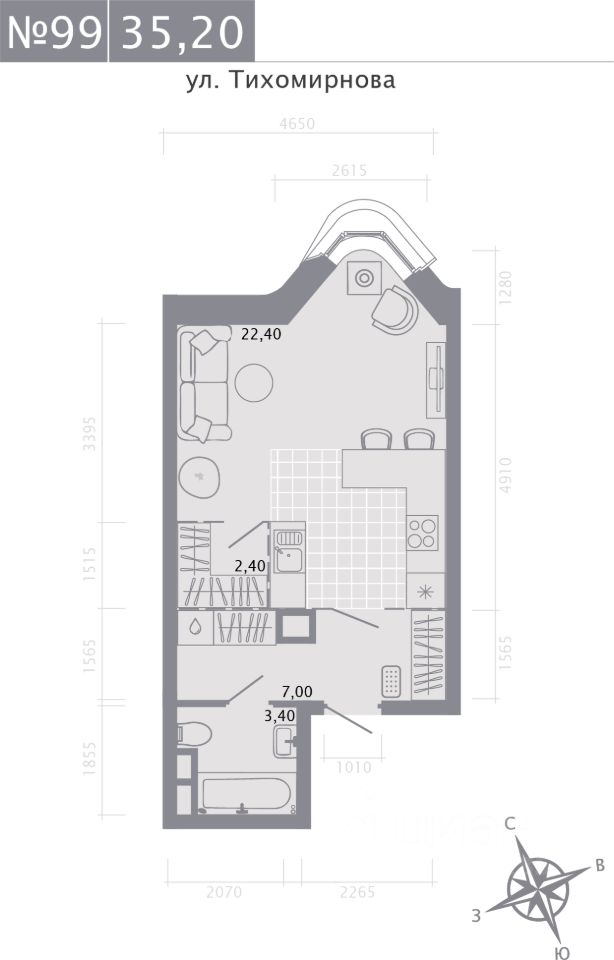 Продаётся студия в строящемся доме (Дом 3), срок сдачи: IV-кв. 2026, общей площадью 35.2 кв.м., на 3 этаже. Новый жилой комплекс "Нити" от застройщика "КамаСтройИнвест" расположен по адресу: Россия, Республика Татарстан, Казань, Вахитовский район, улица Калинина