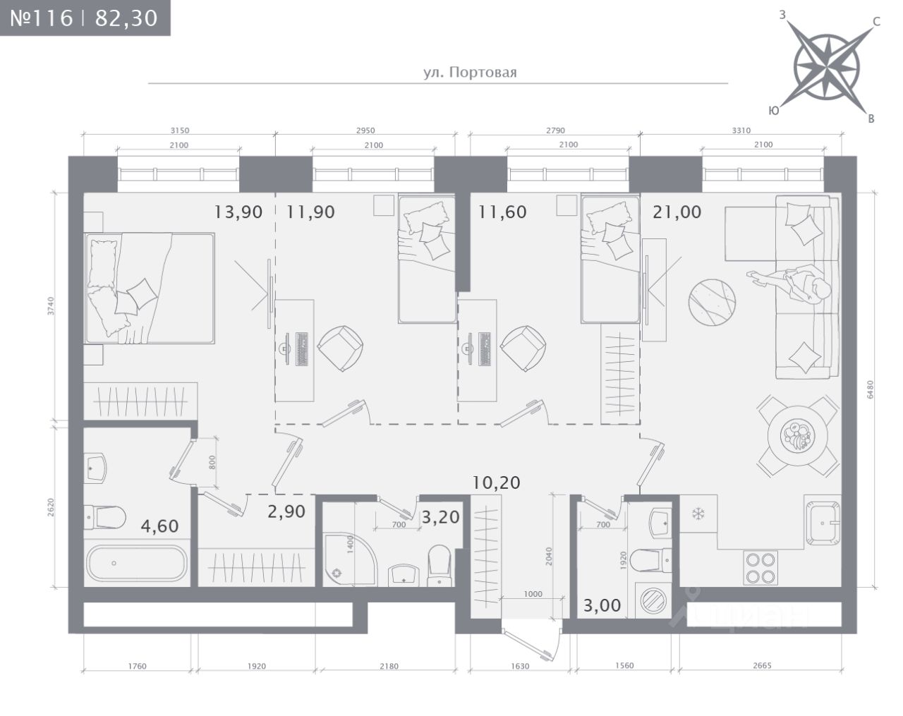 Продаётся 3-комнатная квартира в строящемся доме (Дом 2), срок сдачи: IV-кв. 2027, общей площадью 82.3 кв.м., на 5 этаже.