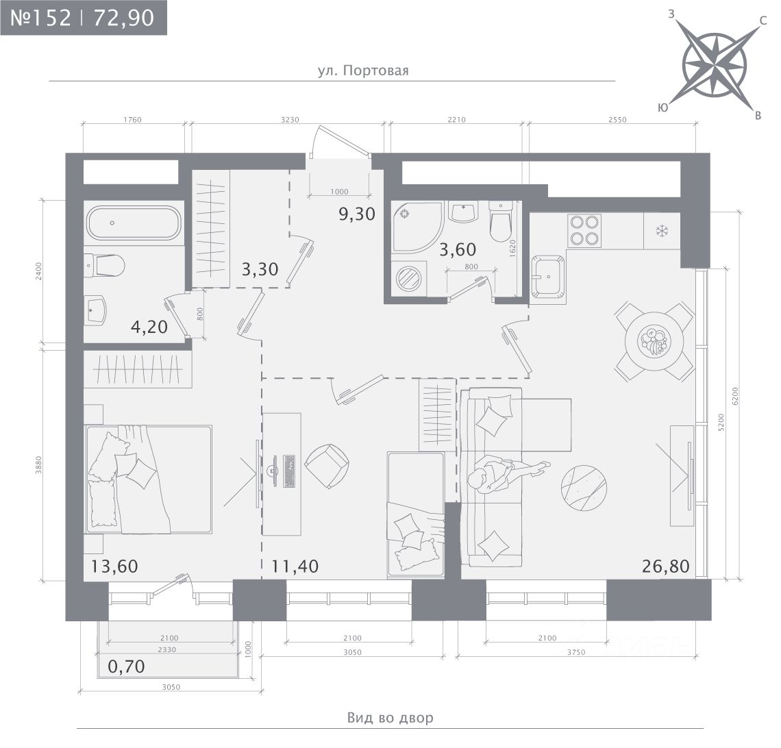 2-комн. квартира, 72,9 м²