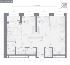 Продаётся 3-комнатная квартира в строящемся доме (Дом 2), срок сдачи: IV-кв. 2027, общей площадью 100.9 кв.м., на 15 этаже.