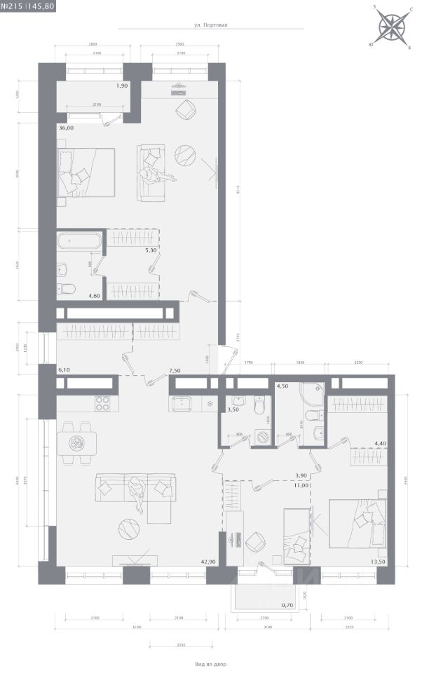 Продаётся 3-комнатная квартира в строящемся доме (Дом 2), срок сдачи: IV-кв. 2027, общей площадью 145.8 кв.м., на 19 этаже.