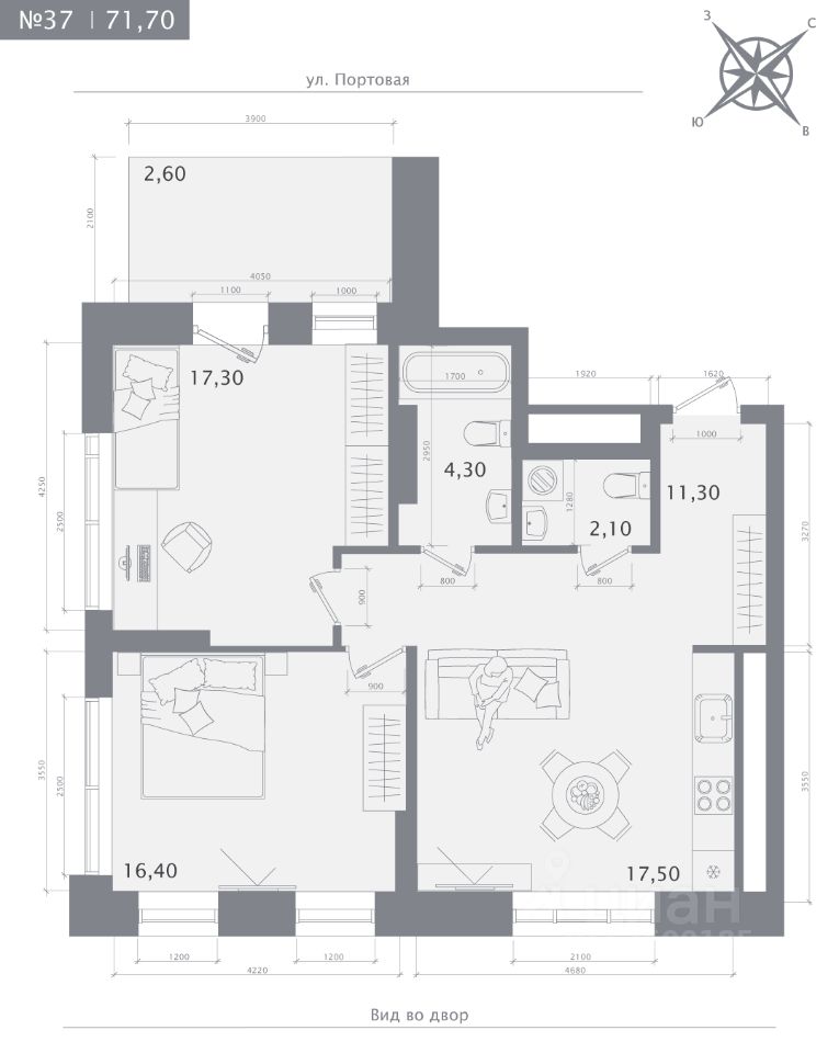 Продаётся 2-комнатная квартира в строящемся доме (Дом 2), срок сдачи: IV-кв. 2027, общей площадью 71.5 кв.м., на 8 этаже.