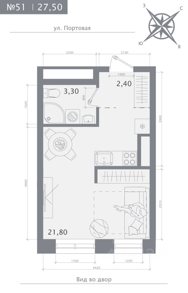 Продаётся студия в строящемся доме (Дом 2), срок сдачи: IV-кв. 2027, общей площадью 27.5 кв.м., на 9 этаже.