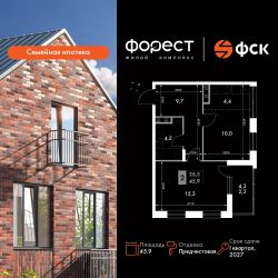 Продаётся 2-к квартира номер 37 общей площадью 45.9 кв.м. на 5-м этаже 7 этажного здания. Отделка Whitebox. Цена с учётом скидки.