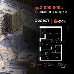 Продаётся 3-к квартира номер 15 общей площадью 61.2 кв.м. на 2-м этаже 7 этажного здания. Отделка Whitebox. Цена с учётом скидки.