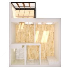 Площадь комнаты позволяет зонировать ее на спальную и гостевую зоны. В проекте функциональная прихожая, чтобы вам было удобно хранить свои вещи.