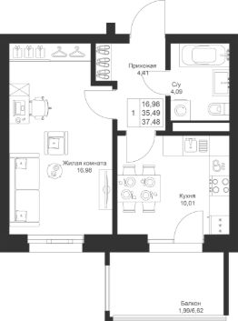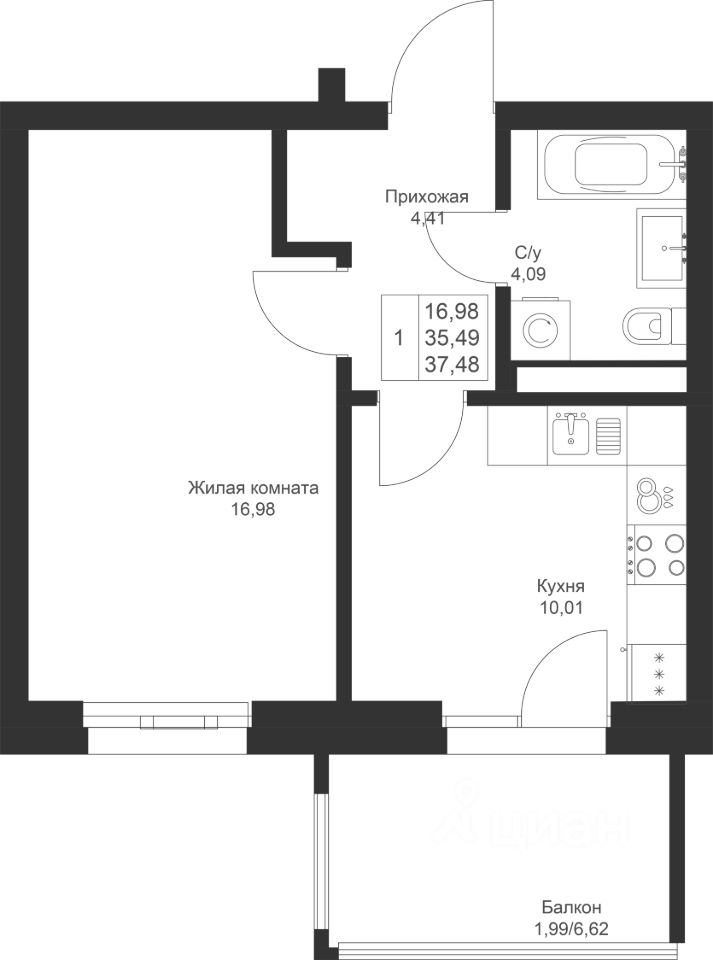 Уютная 1-комнатная квартира с отдельной кухней и выходом на балкон. Здесь можно организовать рабочее место или дополнительное пространство для отдыха.