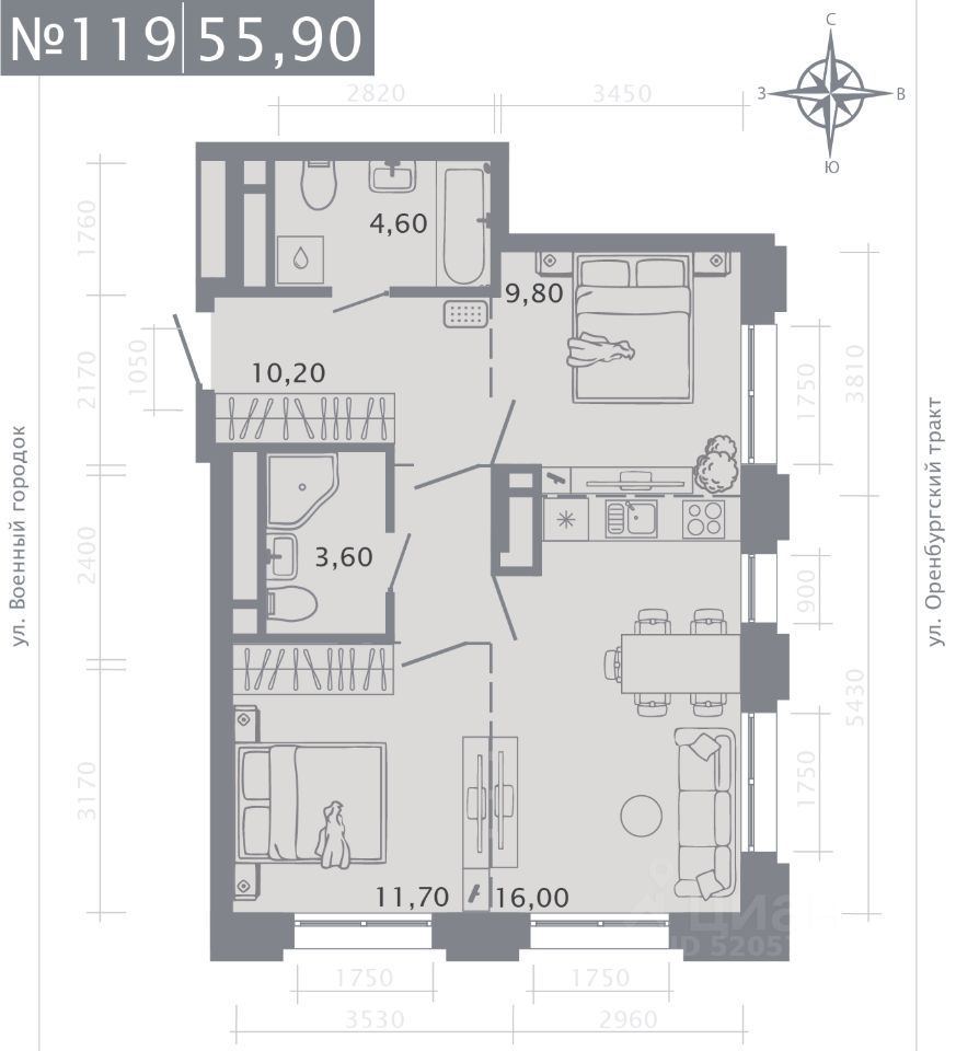 Продаётся 2-комнатная квартира в строящемся доме (Корпус 1), срок сдачи: II-кв. 2028, общей площадью 55.9 кв.м., на 15 этаже. Новый жилой комплекс "Оригана" от застройщика "КамаСтройИнвест" расположен по адресу: Россия, Республика Татарстан, Казань, улица Оренбургский Тракт