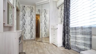 Общая площадь квартиры 43 м, кухня 7 м, гостиная 17,5 , спальня 12, санузел совмещенный , балкон застеклен .