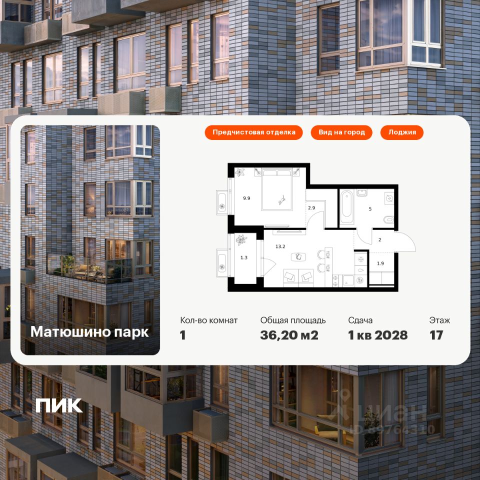 Продаётся 1-комн. квартира площадью 36,2 кв.м на 17 этаже 17 этажного дома (Корпус 3, Секция 1) проекта ПИК Матюшино парк. Светлый просторный подъезд на уровне земли, функциональная планировка, большие окна, предчистовая отделка.