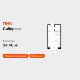 Продаётся квартира-студия площадью 24,4 кв.м на 7 этаже 16 этажного дома (Корпус 3, Секция 7) проекта ПИК Сиберово. Светлый просторный подъезд на уровне земли, функциональная планировка, большие окна, предчистовая отделка.