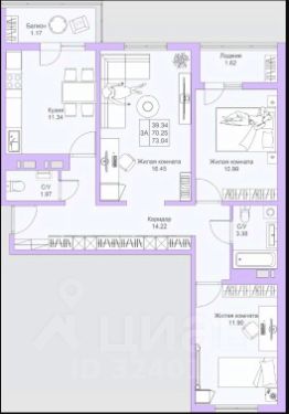 Все комнаты раздельные и правильной формы 16,5кв м, 12 и 11 кв м