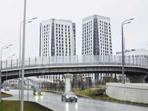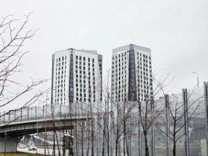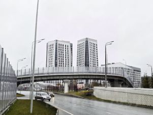 Двор дома огорожен, на территории двора располагается детская, спортивная площадка, посажены многочисленные растения, рядом располагается многоуровневый паркинг, вокруг дома есть многочисленные места для парковки автомобилей.