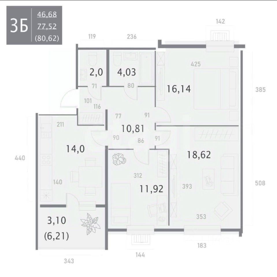 Общая площадь квартироы 76,8 м2,; жилая площадь 45 м2,кухня 15 м2.