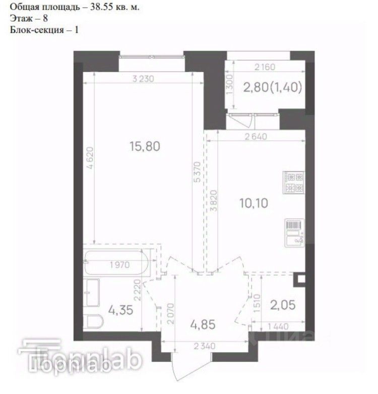 38,55 м²
