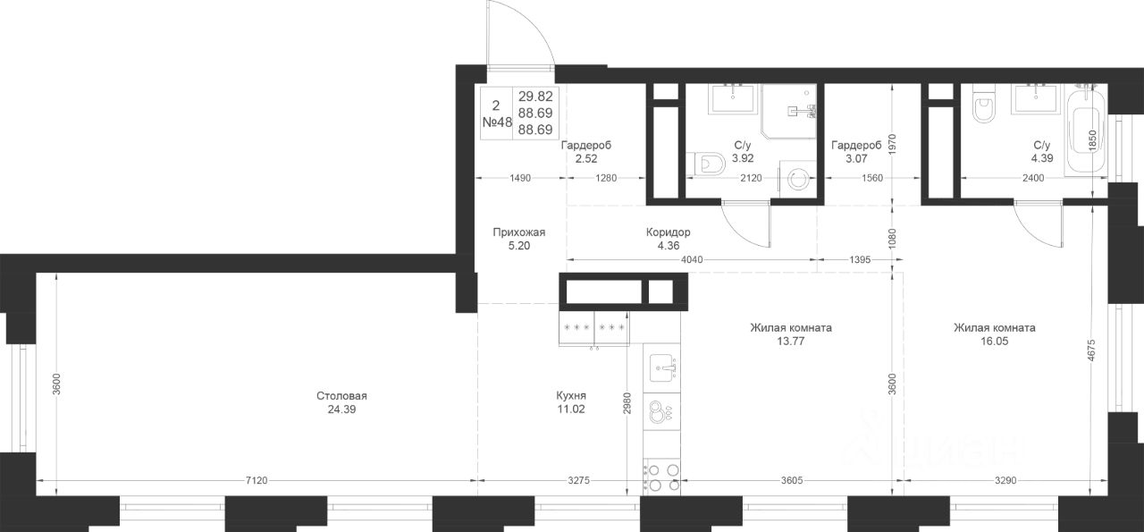 Продается 2-комнатная квартира 48 площадью 88,69 кв.м на 2 этаже в жилой резиденции премиум-класса ЖК "Мифы", созданная для ценителей роскошной и приватной жизни в городе. Резиденция из 4-х корпусов, объединенная галереей с респектабельным лобби и общественным пространством.
