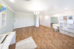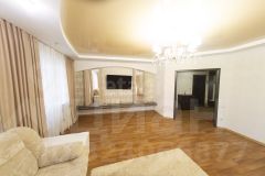 Большая кухня в классическом дизайне,площадью 22 метра,огромный коридор площадью 30 метров с вместительной гардеробной, два сан-узла из кафельной плитки,а так же прекрасная сауна заложенная в проект квартиры.Три вместительные комнаты 30 метров,31,и 27.. Две лоджии 6,2м метра и квадратная отапливаемая 5.2 м может выполнять функцию 4 ой небольшой комнаты.Квартира для любителей комфортабельного жилья в городских условиях по характеристикам частного дома.