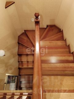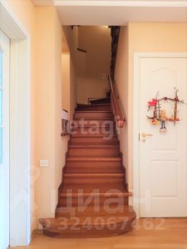 великолепный холл с двухуровневым потолком и красивой деревянной лестницей.