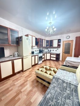 Квартира уютная и теплая с отличной планировкой, расположена на высоком первом этаже. Огромная кухня - мечта хозяйки, площадью 17,2 кв.м. На кухне остаётся : кухонный гарнитур, стол и диван.