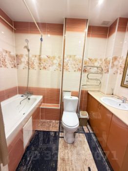 Санузел совмещённый, просторный, площадью 4,6 кв. м. с ремонтом. Стены и пол в кафеле, сан. техника в хорошем состоянии, стиральная машина остаётся.