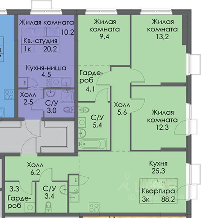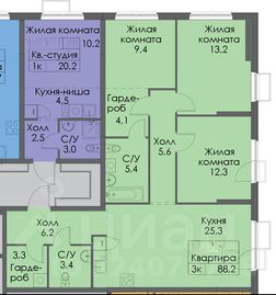 Класс жилья - Комфорт, общая площадь - 88,2 кв. м. 10/17.