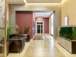• Лобби на первом этаже: Элегантное и функциональное пространство для встречи гостей.