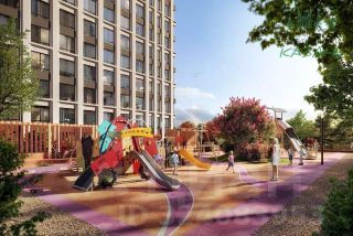 На стилобате собственный парк: прогулочный бульвар, переменный ландшафт, детские площадки для разных возрастов, уютная и современная вечерняя подсветка, воркаут площадка, спортивные площадки, лаундж зоны, смотровая площадка с видом на Ривьеру и Аквапарк.
