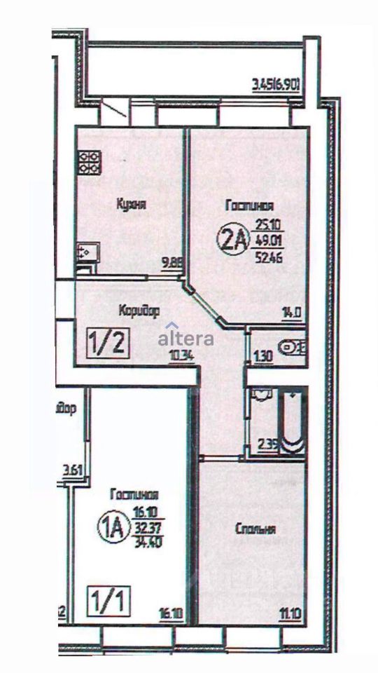 Две полноценные изолированные комнаты, что позволяет сделать отдельную спальню для взрослых и спальню для детей, либо кабинет.