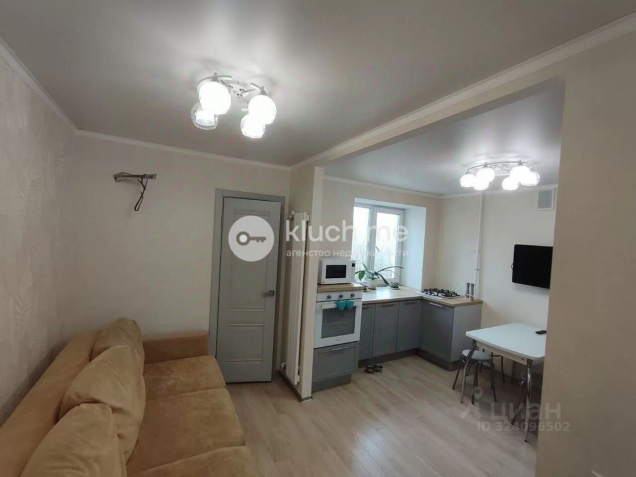• Просторная кухня-гостиная 15 м² с современным гарнитуром и техникой.