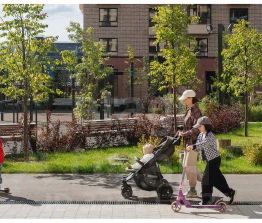 Для удобства жителей мы предусмотрели просторные лобби, кладовые помещения, колясочные, подъезды с двумя входами и IР-домофонами, которыми можно управлять через приложение. А на первых этажах — кафе, магазины, сервисы и уютный двор-парк с зонами для йоги, игр и работы на свежем воздухе.