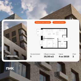 Продаётся 1-комн. квартира площадью 35,5 кв.м на 2 этаже 16 этажного дома (Корпус 3, Секция 7) проекта ПИК Сиберово. Светлый просторный подъезд на уровне земли, функциональная планировка, большие окна, предчистовая отделка.