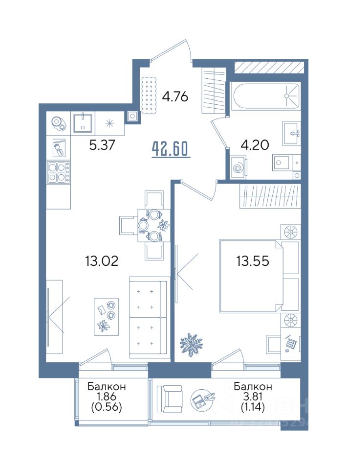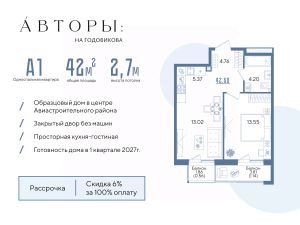 Продается 1-к квартира 73 в образцовом доме "Авторы на Годовикова" в центре Авиастроительного района. Квартира на 2 этаже площадью 42.6 м², кухней-гостиной и высотой потолков 2.7 м. Квартира сдается в предчистовой отделке со стяжкой полов, предоставляя полную свободу для ваших предпочтений в дизайне.