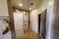 На первом этаже прихожая, комната которую можно использовать как тренажерный зал, комната для хранения инструментов и инвентаря с выходом во двор и большим капитальным погребом, сауна электрическая с душем и санузлом, зона барбекю.