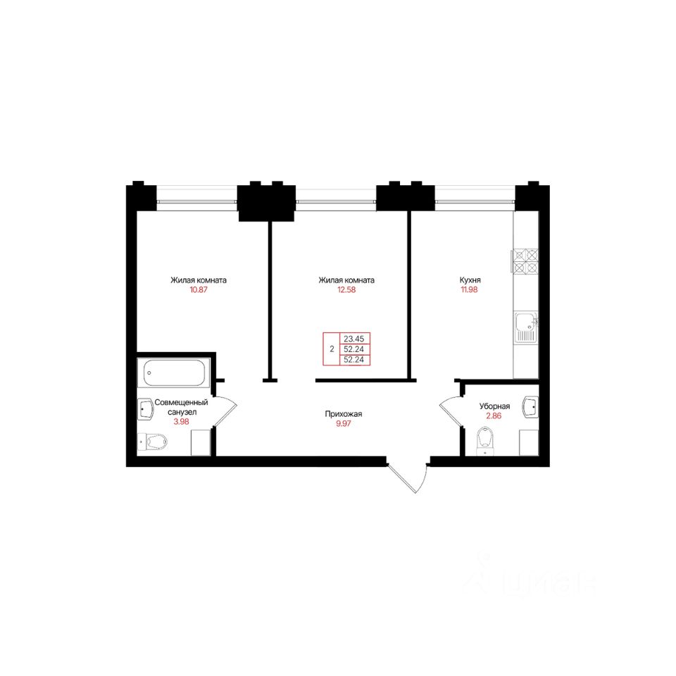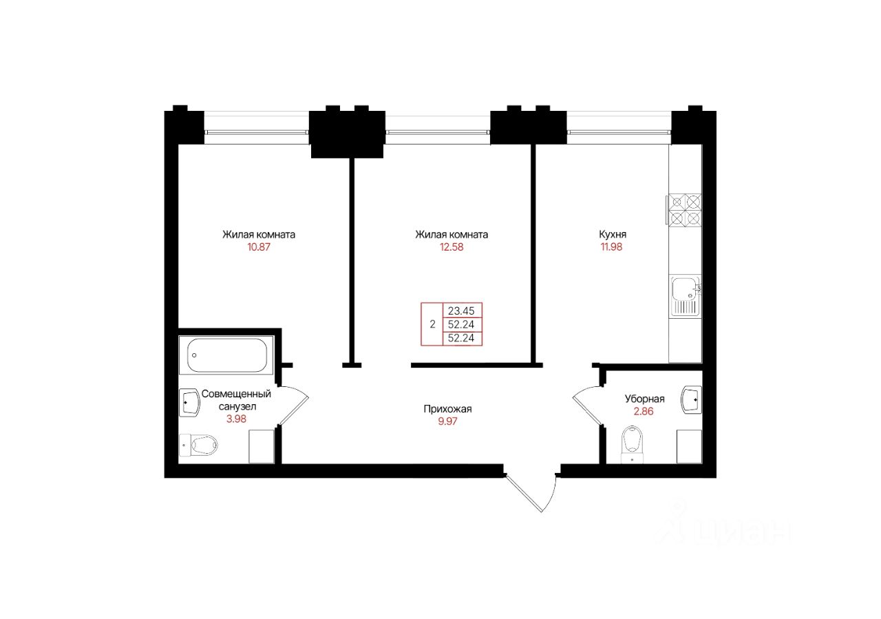 Общая площадь52,24 м²