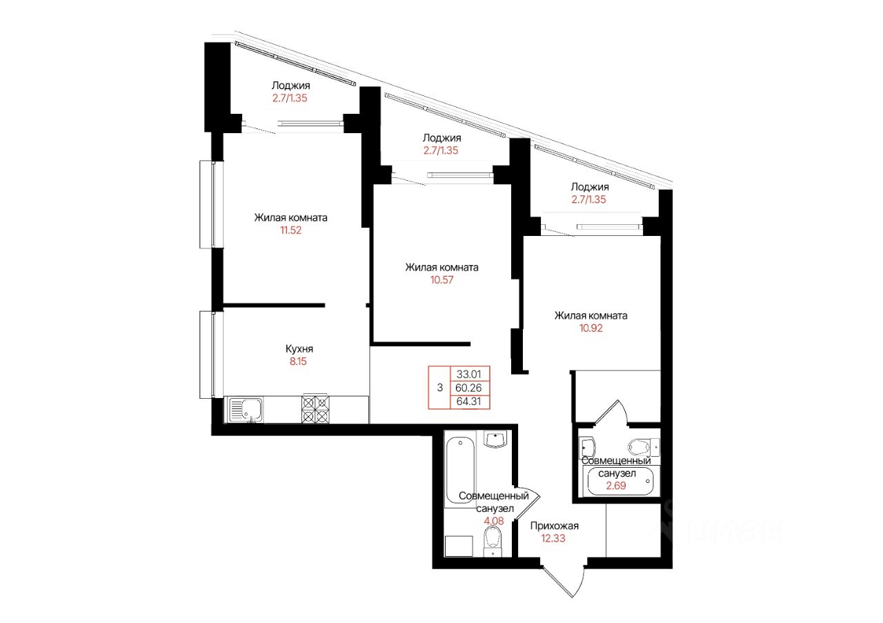 Общая площадь60,26 м²