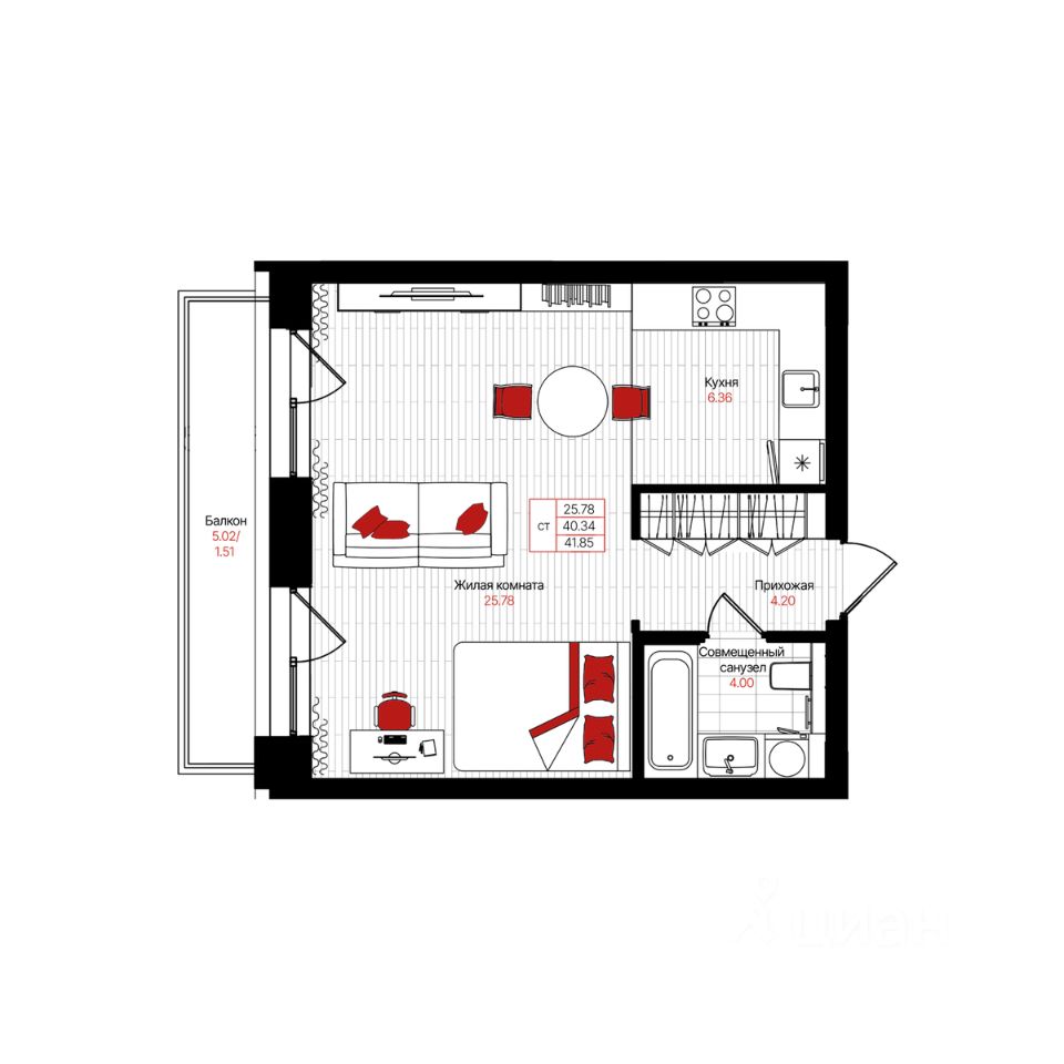 Общая площадь41,85 м²