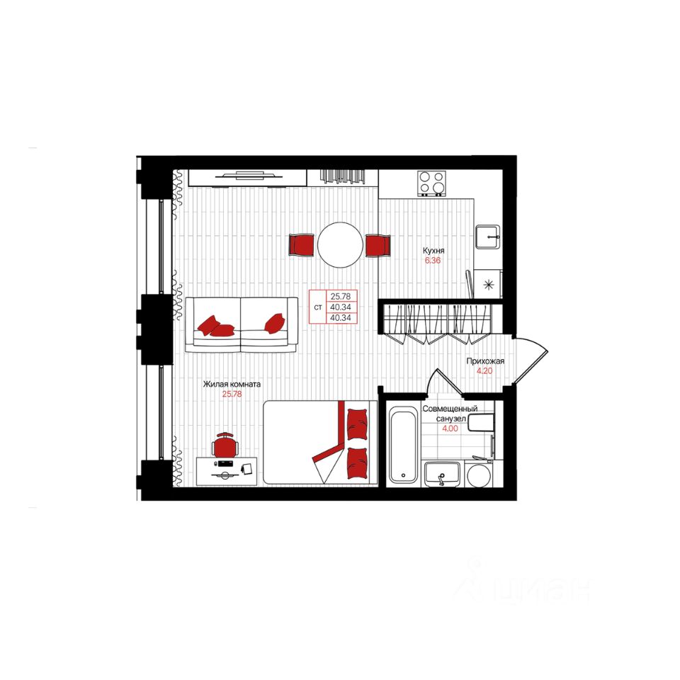 Общая площадь40,34 м²