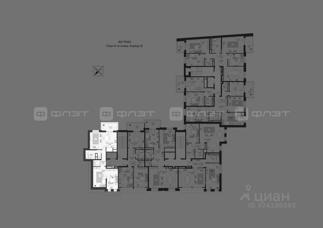 1-комнатная квартира 81 м² на 4 этаже в строящемся доме бизнес-класса Жилого комплекса "TRIO".