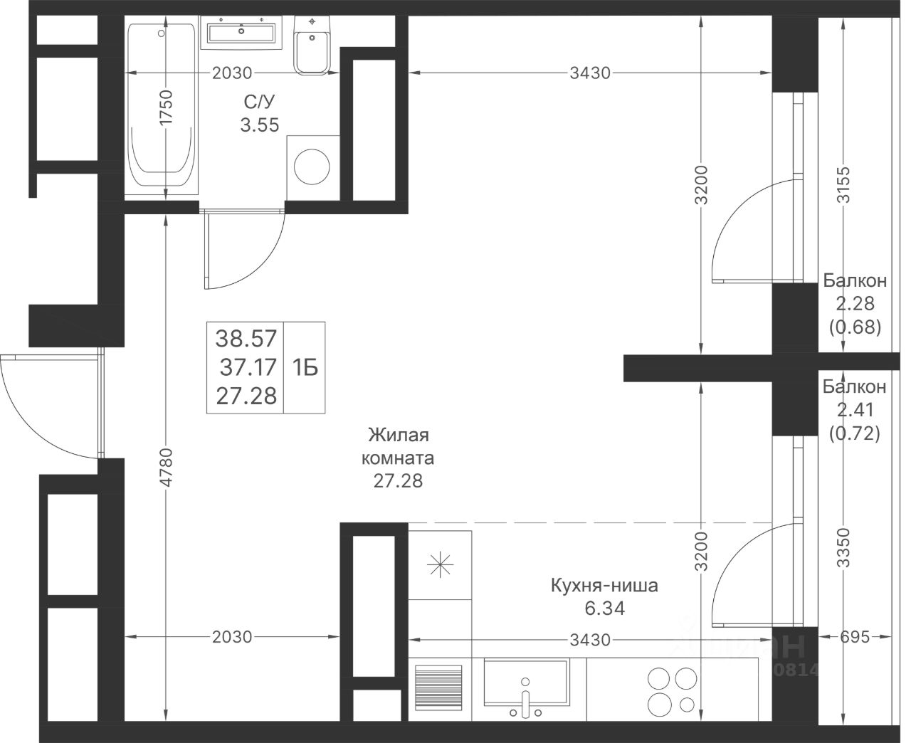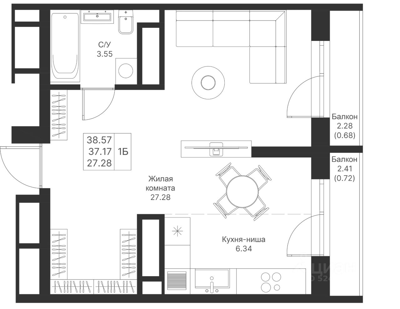 Продается 1-комнатная квартира 583 площадью 38,57 кв.м на 14 этаже в строящемся доме проекта "Мой Ритм" компании "Ак Барс Дом".