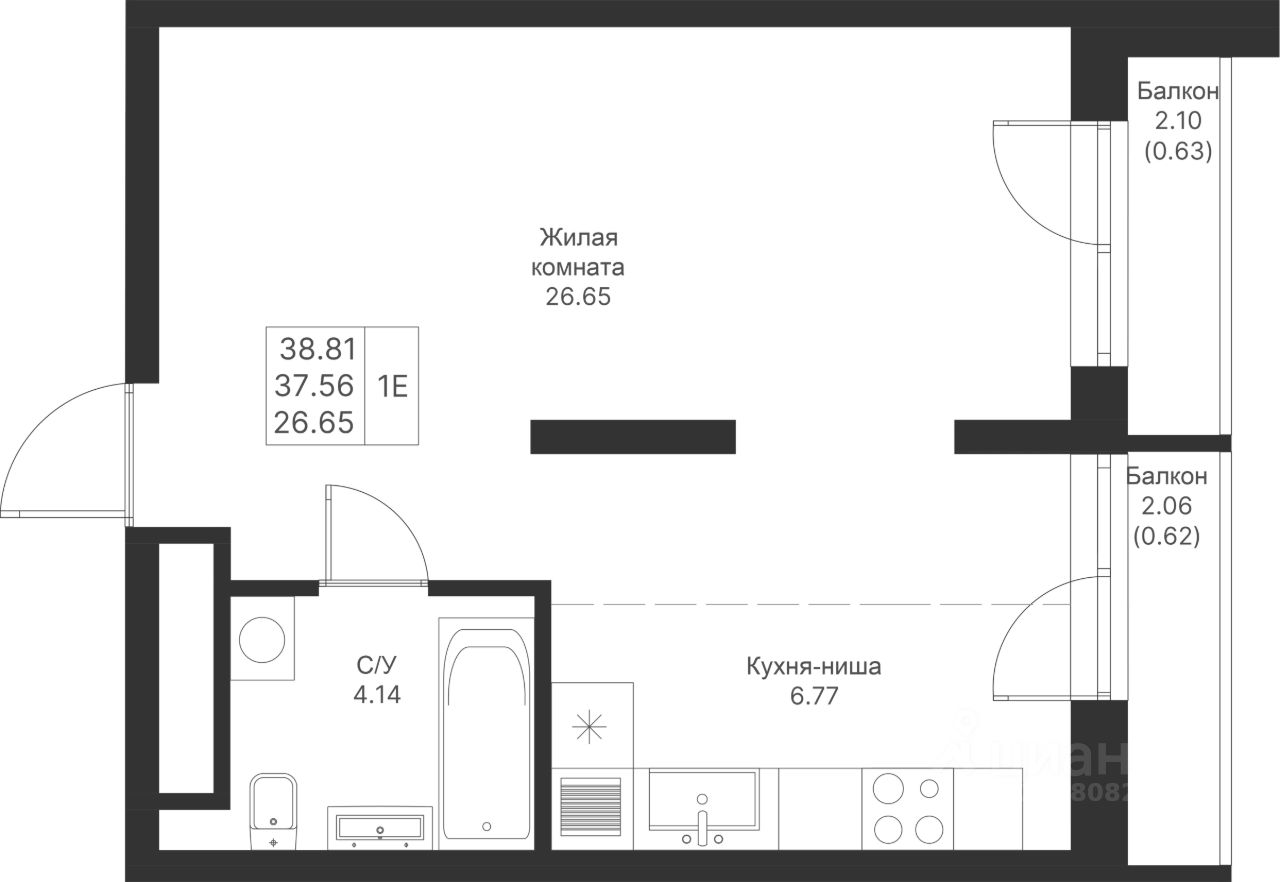 Продается 1-комнатная квартира 732 площадью 38,81 кв.м на 13 этаже в строящемся доме проекта "Мой Ритм" компании "Ак Барс Дом".