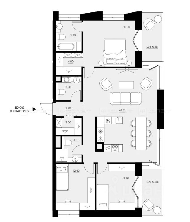 3-комнатная квартира 116.01 м² на 4 этаже в строящемся доме элитного-класса Жилого комплекса "Promenade".