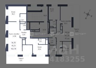 2-комнатная квартира 102.78 м² на 5 этаже в строящемся доме элитного-класса Жилого комплекса "Promenade".