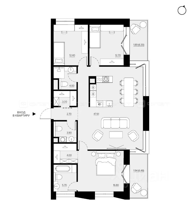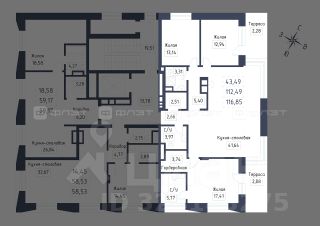 3-комнатная квартира 116.85 м² на 3 этаже в строящемся доме элитного-класса Жилого комплекса "Promenade".