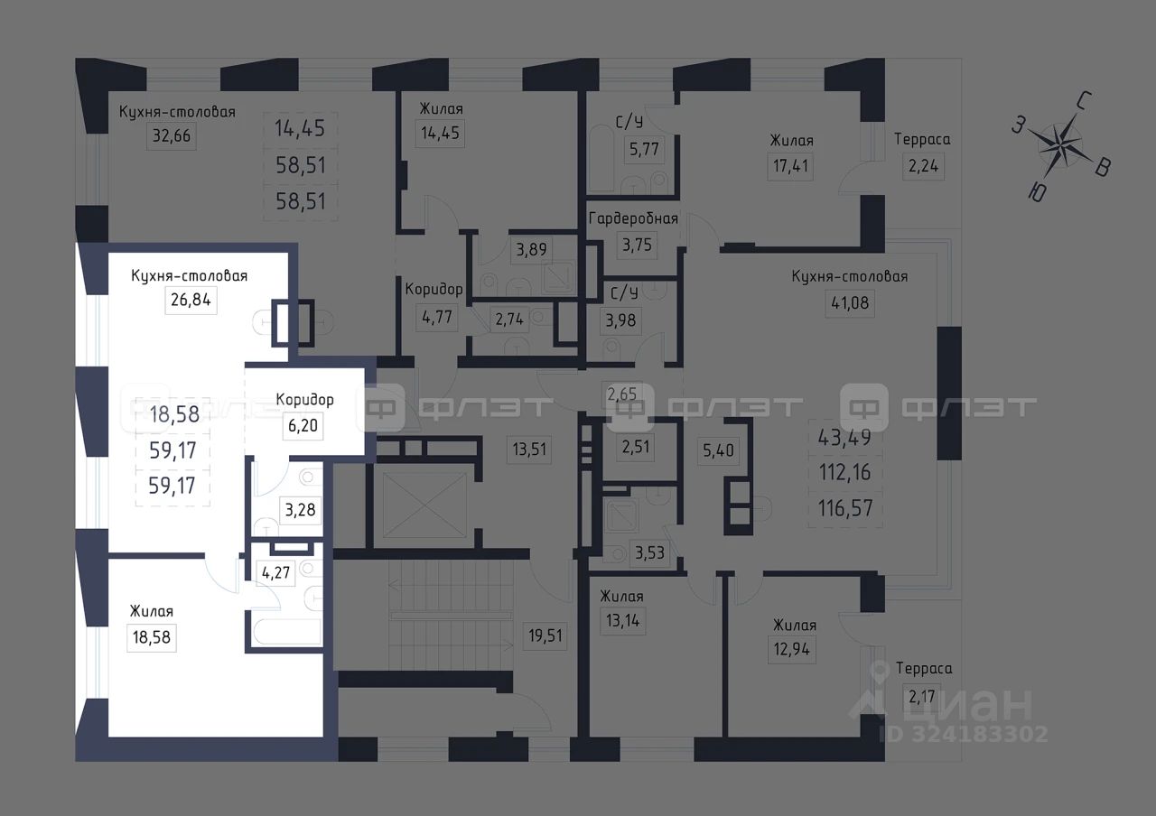 1-комнатная квартира 59.17 м² на 3 этаже в строящемся доме элитного-класса Жилого комплекса "Promenade".