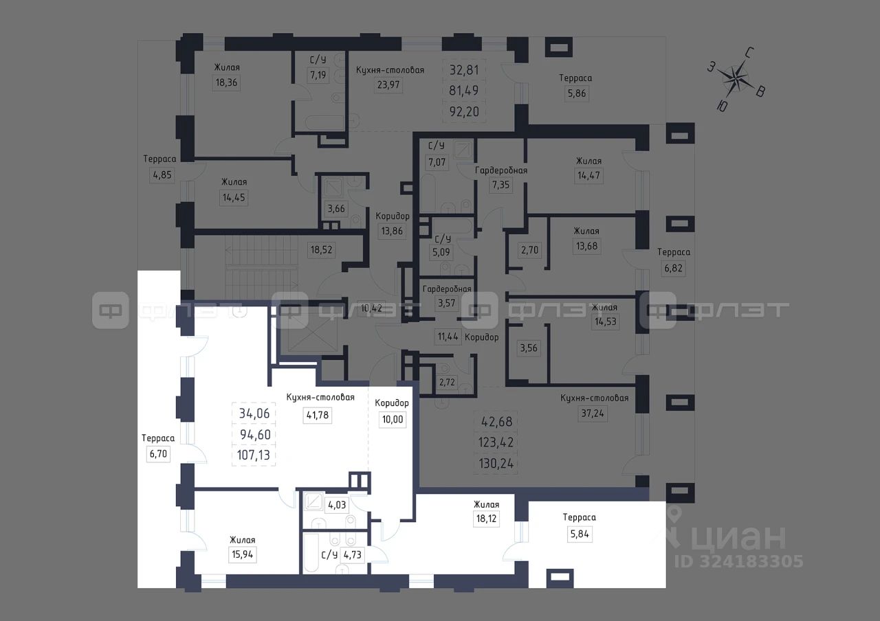 2-комнатная квартира 107.13 м² на 2 этаже в строящемся доме элитного-класса Жилого комплекса "Promenade".
