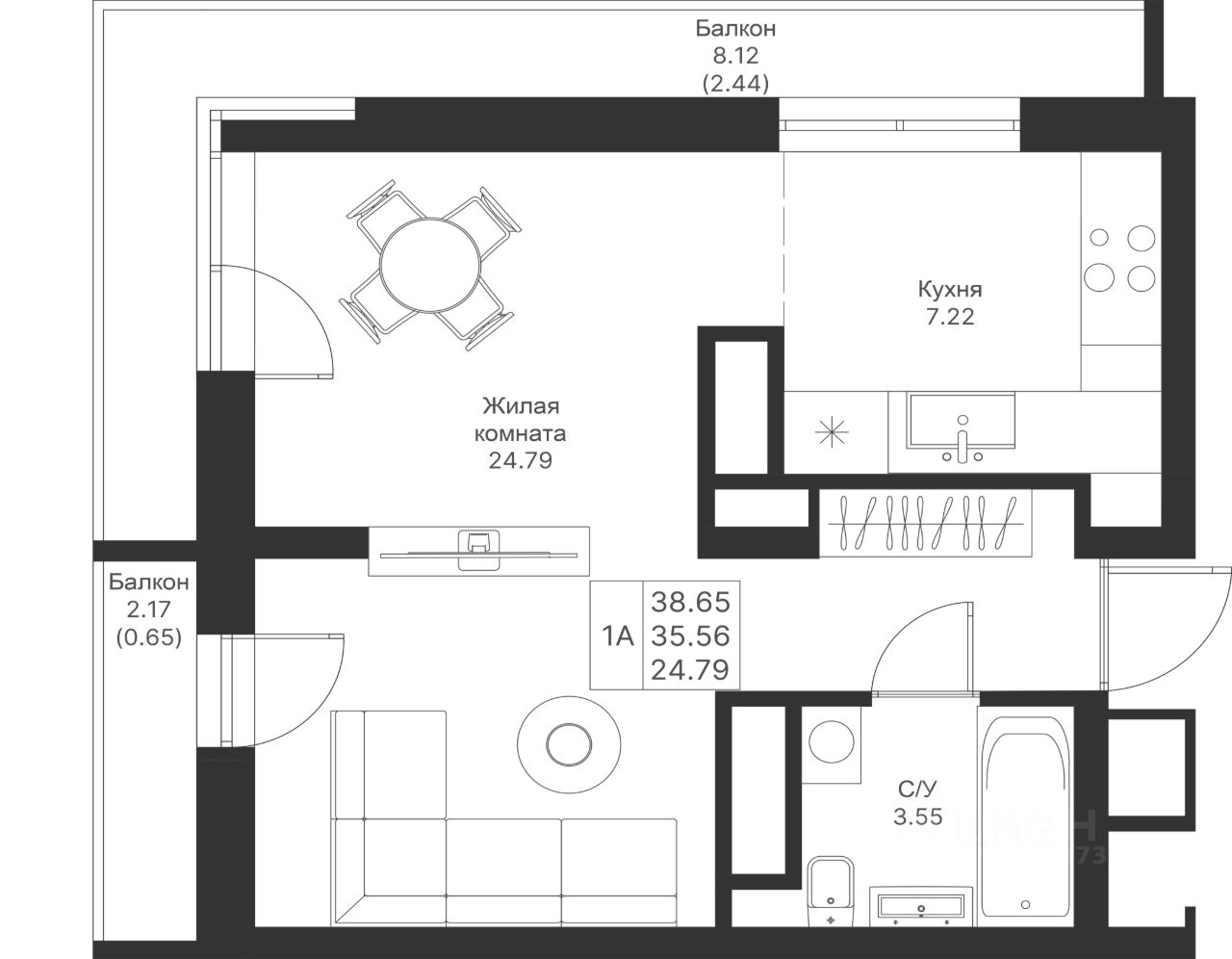 Уютная и продуманная 1-комнатная квартира с просторной жилой комнатой и кухней. Удачное зонирование на гостевое и личное пространство.