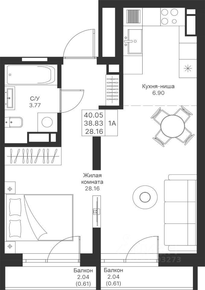Продается 1-комнатная квартира 462 площадью 40,05 кв.м на 7 этаже в строящемся доме проекта "Мой Ритм" компании "Ак Барс Дом".
